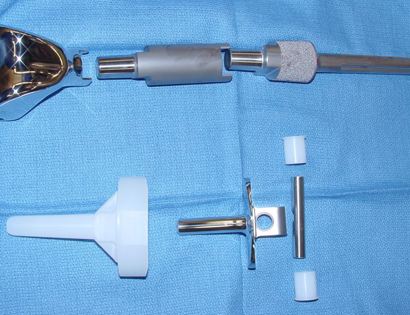 This is a diagram of how all of the parts of the femur prosthesis fit together