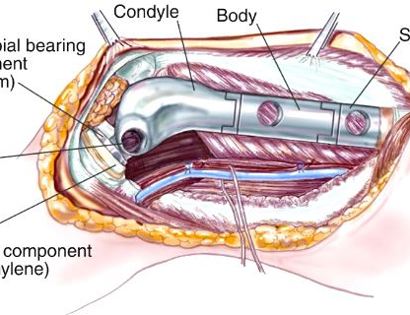 Soft tissue coverage of the prosthesis. Multiple muscle rotation flaps are used to restore function and stability of the knee as best as possible. The goal is to provide a stable knee so the extremity can function well. Soft-tissue reconstruction that involves rotating and reattaching the surrounding muscles, including the gastrocnemius (calf muscle) and vastus medialis (quadriceps muscle). Restoring the function of the surrounding muscles and knee joint is most important for achieving optimal functional outcomes and for protecting the prosthesis from infection.