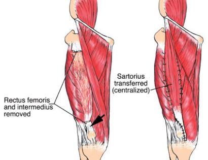 To reconstruct the area after the tumor is removed, muscle is attached and may be reinforced with surgical tape.