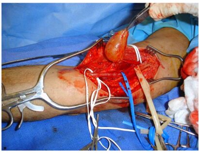 Separating important nerves and blood vessels from the tumor to preserve the nerve function and blood supply to the region. Soft-tissue tumors usually compress, displace and stretch these structures and rarely encase them. Once these are separated, they are retracted gently and preserved throughout the surgery. Rarely, nerves and blood vessels may be removed with the tumor and then restored with various techniques.