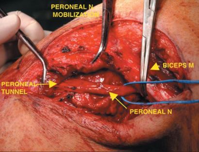Separating all major arteries, veins, and nerves from the tumor. In rare cases a nerve (s) may need to be removed if it is involved by the bone sarcoma. For this procedure it is important to properly identify the popliteal, tibial, and peroneal arteries and veins as well as the tibial nerve. Once the blood vessels and nerves are separated, they can be retracted (moved away from the tumor) and protected throughout the procedure.